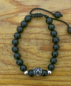 Pulsera negra ajustable con tigre de plata