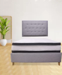 Combo Base Cama Y Colchón Blaser Gris Claro 120x190cm Semidoble Con Espaldar