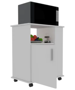 Módulo microondas tahara blanco con rodachinas plásticas y amplio espacio para almacenar utensilios