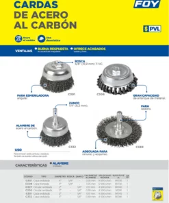 Carda circular ondulada alambre delgado 6″ x 0.30 con rosca M14 FOY.