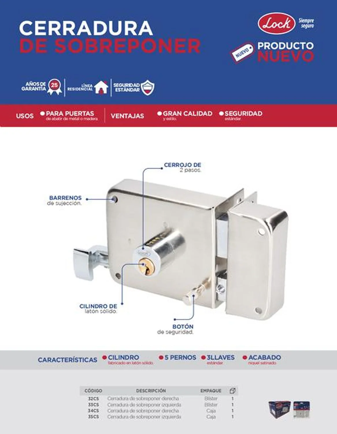Cerradura sobreponer llave estándar izquierda en caja Lock 35CS