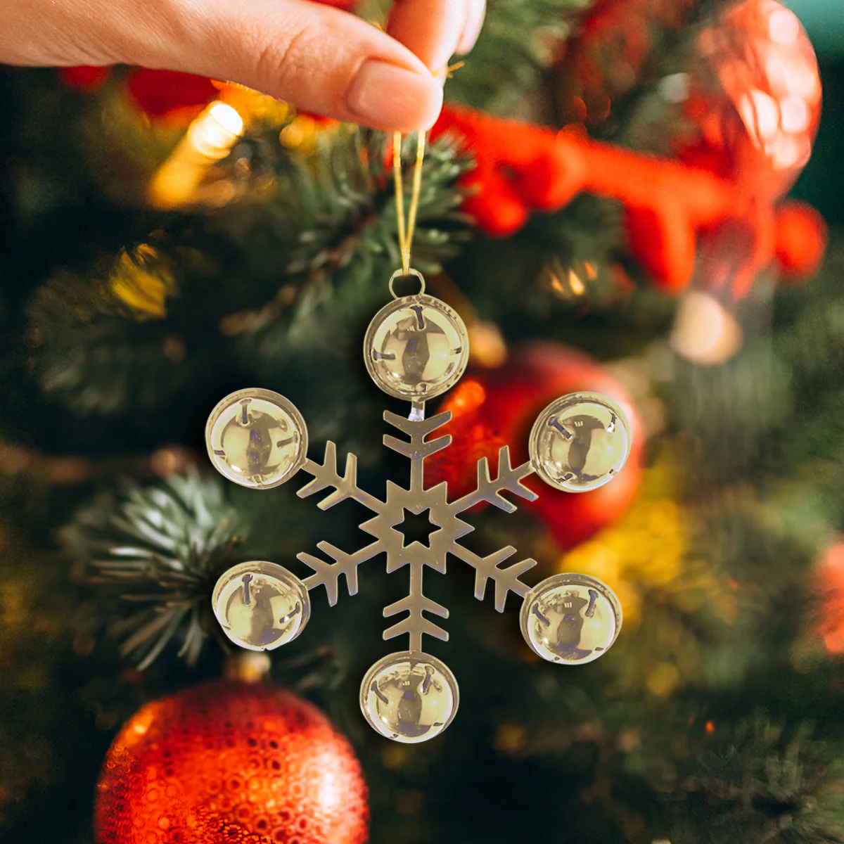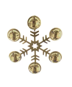 - Añade un toque festivo y brillante a tu hogar con este copo de nieve decorado con cascabeles.