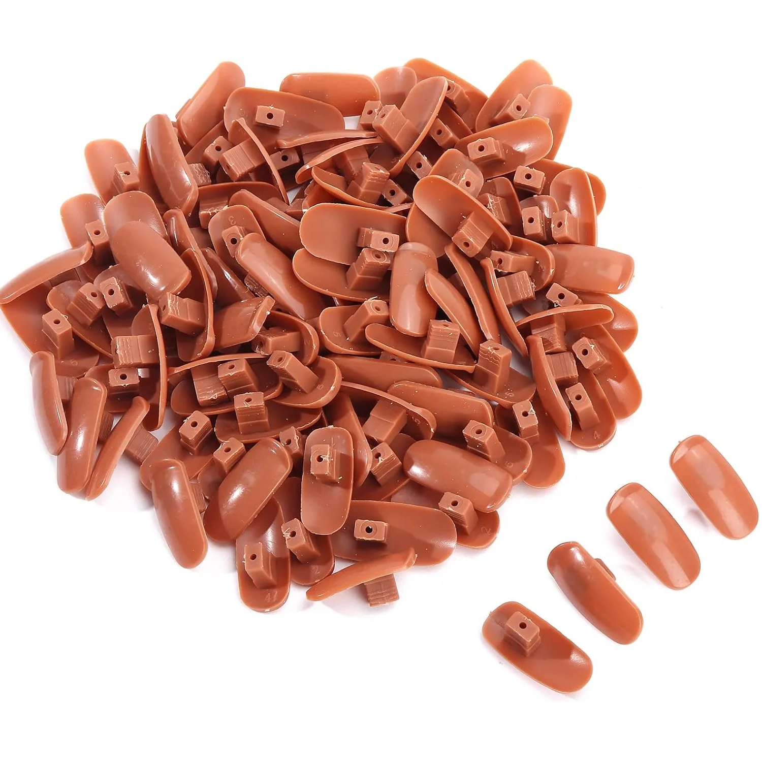 Dedos De Practica Manicure + 100 Uñas Repuesto Marron
