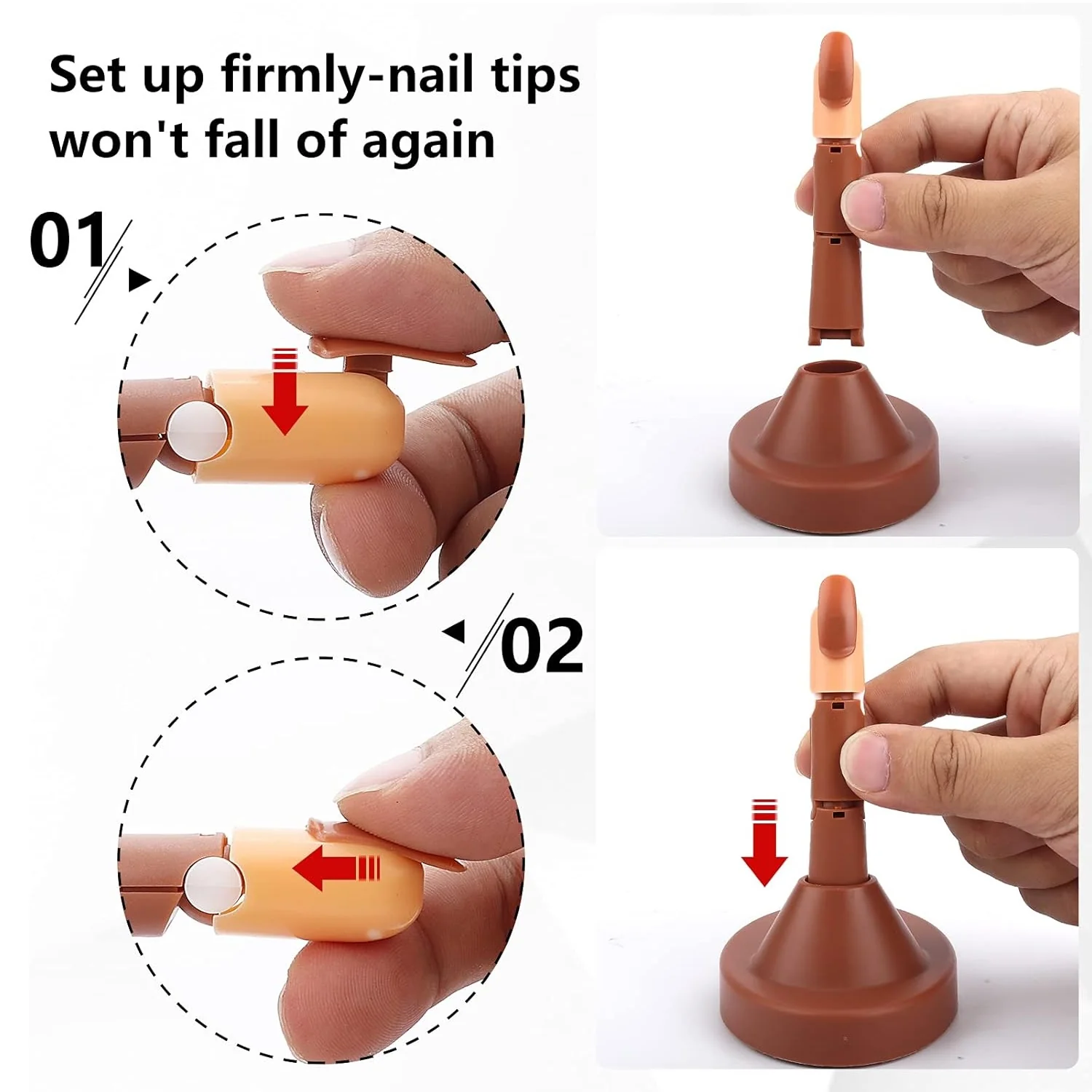 Dedos de Práctica: El juego de dedos de práctica incluye 3 dedos de uñas, 1 base de dedo y 100 piezas de recambio de puntas de uñas. Este conjunto de dedos de arte de uñas puede satisfacer su entrenamiento o práctica de uñas de arte.