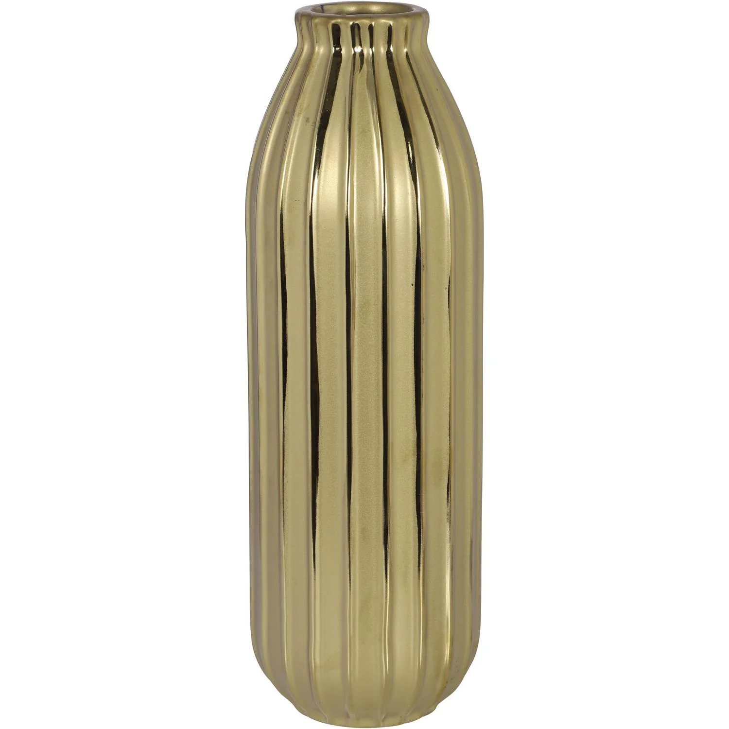 Añade un toque de lujo y sofisticación a tu decoración con nuestro jarrón alto estriado en dorado brillante. Este jarrón de diseño elegante y contemporáneo presenta una forma alargada con detalles estriados que capturan y reflejan la luz de manera espectacular, creando un efecto visual impresionante.