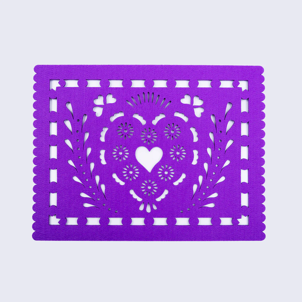 -Mantel individual con diseño de papel picado y diseño de corazones.