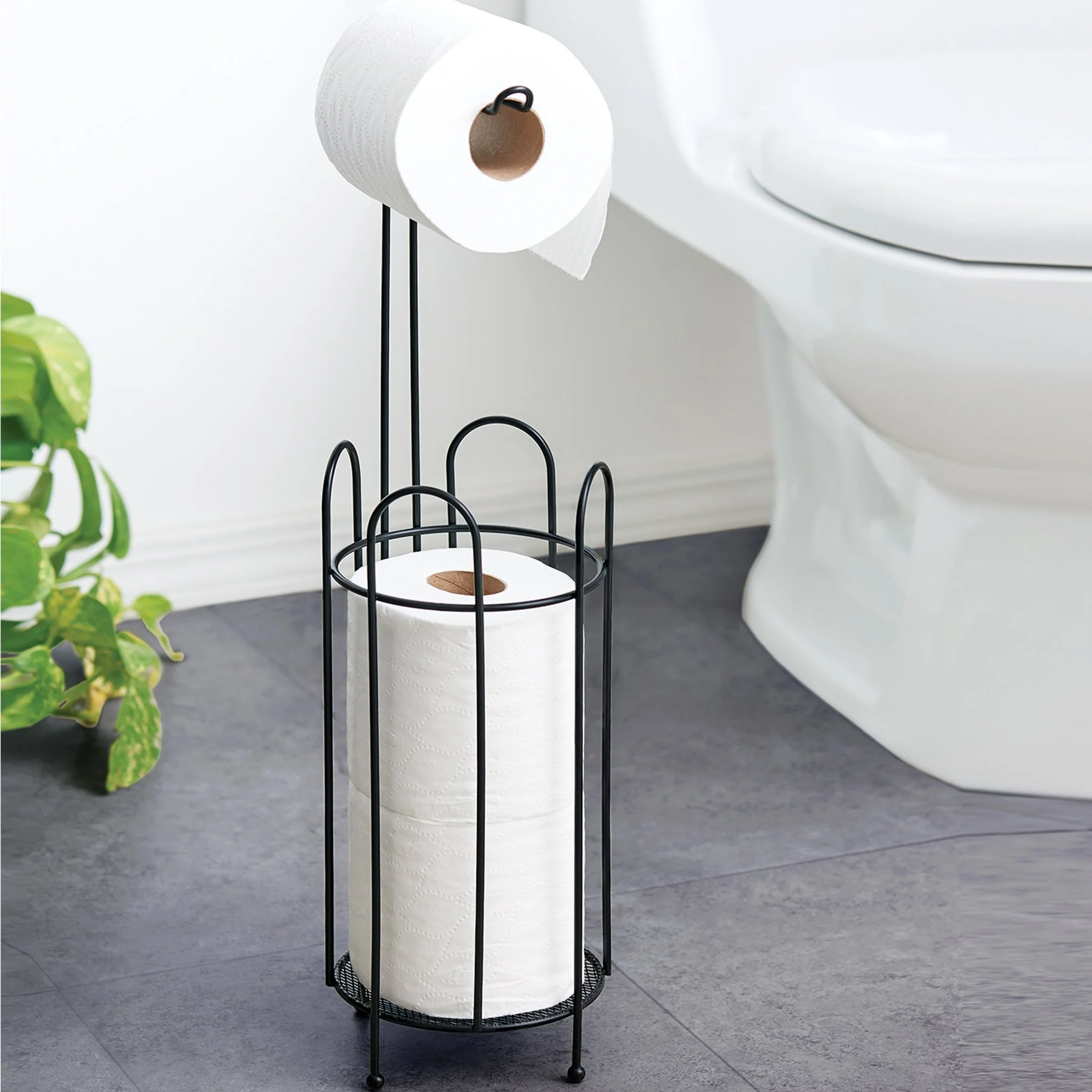 Dale una imagen increíble a tu baño con la línea black. Puedes almacenar hasta dos rollos en la parte inferior y uno más en la parte superior.