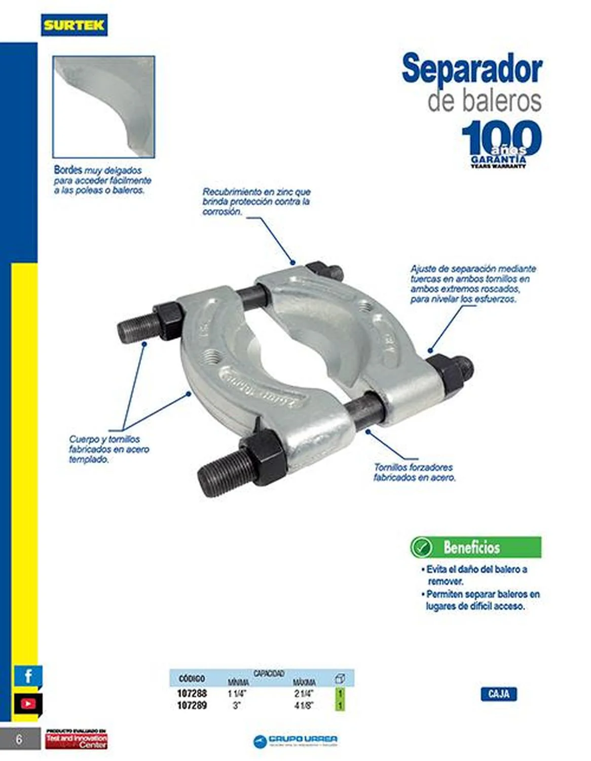 MARCA: Surtek DESCRIPCION DEL PRODUCTO: -Cuerpo en acero con terminado en níquel-Capacidad 3″ a 4-1/2″ ESPECIFICACIONES TECNICAS: -Capacidad Máxima: 3″-Capacidad Mínima: 4 1/8″ CONTENIDO DEL PAQUETE: separador de baleros GARANTIA: ALTO EN CM: 3.2 LARGO EN CM: 18.2 FONDO EN CM: 16.2 PESO EN KG: 2.58