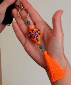 Llavero Trompo Alebrije. Taller Jacobo y María Ángeles [Naranja-Flores Moradas-Mota Naranja]